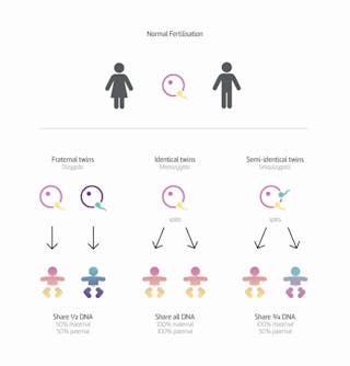 Wissenschaftler glauben, dass zweieiige Zwillinge das Ergebnis davon sind, dass eine Eizelle zwei Spermien gleichzeitig eindringen lässt (was bisher als nicht lebensfähig galt, was bedeutet, dass eine Schwangerschaft niemals eintreten würde).