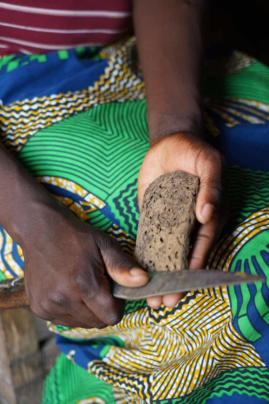 ザンビア出身のリンポ(22)は平地から集めた牛糞を使っています。 パテを乾燥させ、小さく成形します。 彼女は生理用品を使う余裕がないと言います。