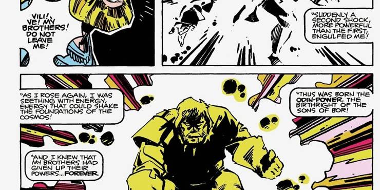 Cette histoire voit Odin et ses frères, Vili et Ve, voyager à Musspelheim pour empêcher Surtur de détruire les Neuf Royaumes. Alors que les trois frères réussissent à dérober la Flamme éternelle à Surtur, déjouant ainsi ses plans, Vili et Ve doivent rester en arrière pour empêcher Surtur de poursuivre Odin jusqu’à Asgard. A la mort de ses frères, leurs essences fusionnèrent avec celle d’Odin créant l’Odin-Force