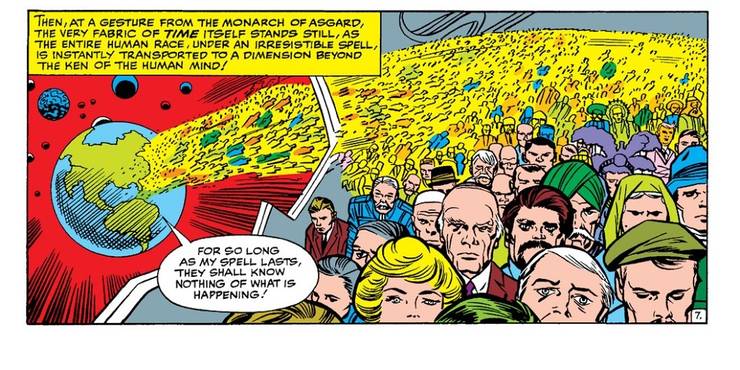 Dans cette histoire, Loki a déchaîné une horde de géants du givre et du feu sur la Terre. Pour éviter des pertes civiles inutiles, Odin a décidé de transporter toute la population de la Terre vers une autre dimension. Ce transport de toute la population de la Terre a permis à Thor et à ses alliés de se lâcher dans leur combat contre l’armée de géants. Après avoir vaincu les géants, Odin a ramené l’humanité sur Terre.