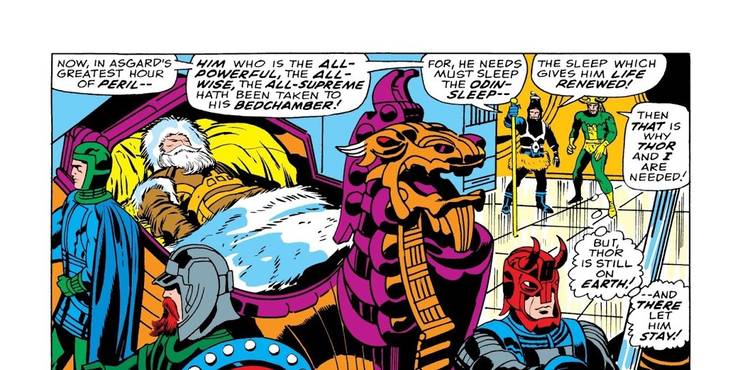 Le Odinsleep est une période dangereuse pour Asgard car Odin est complètement inconscient et incapable de répondre à toute sorte de stimulation. Avec Odin non réactif et incapable d’utiliser son pouvoir illimité, Asgard est vulnérable aux attaques de ses différents ennemis. Ce problème est apparent dans la première intrigue traitant d’Odinsleep impliquant à la fois Loki essayant de prendre le contrôle d’Asgard et Mangog essayant de le détruire.