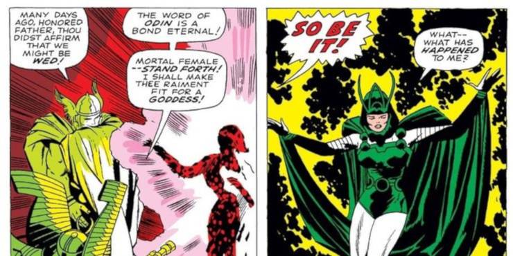 Odin transforme Jane Foster en Asgardien, dans le cadre d’un test. Le test d’Odin était que si Jane Foster pouvait vivre en tant qu’Asgardienne, Thor pourrait l’épouser. Jane, cependant, a du mal à s’adapter au fait d’être une personne dotée d’un pouvoir cosmique. Ce qui l’a fait échouer au test, c’est qu’Odin, qui était contre le fait que Thor tombe amoureux de Jane, lui a fait tester sa bravoure contre une personnalisation littérale de la peur. Elle a échoué au test de bravoure et Odin l’a retransformée en humaine.